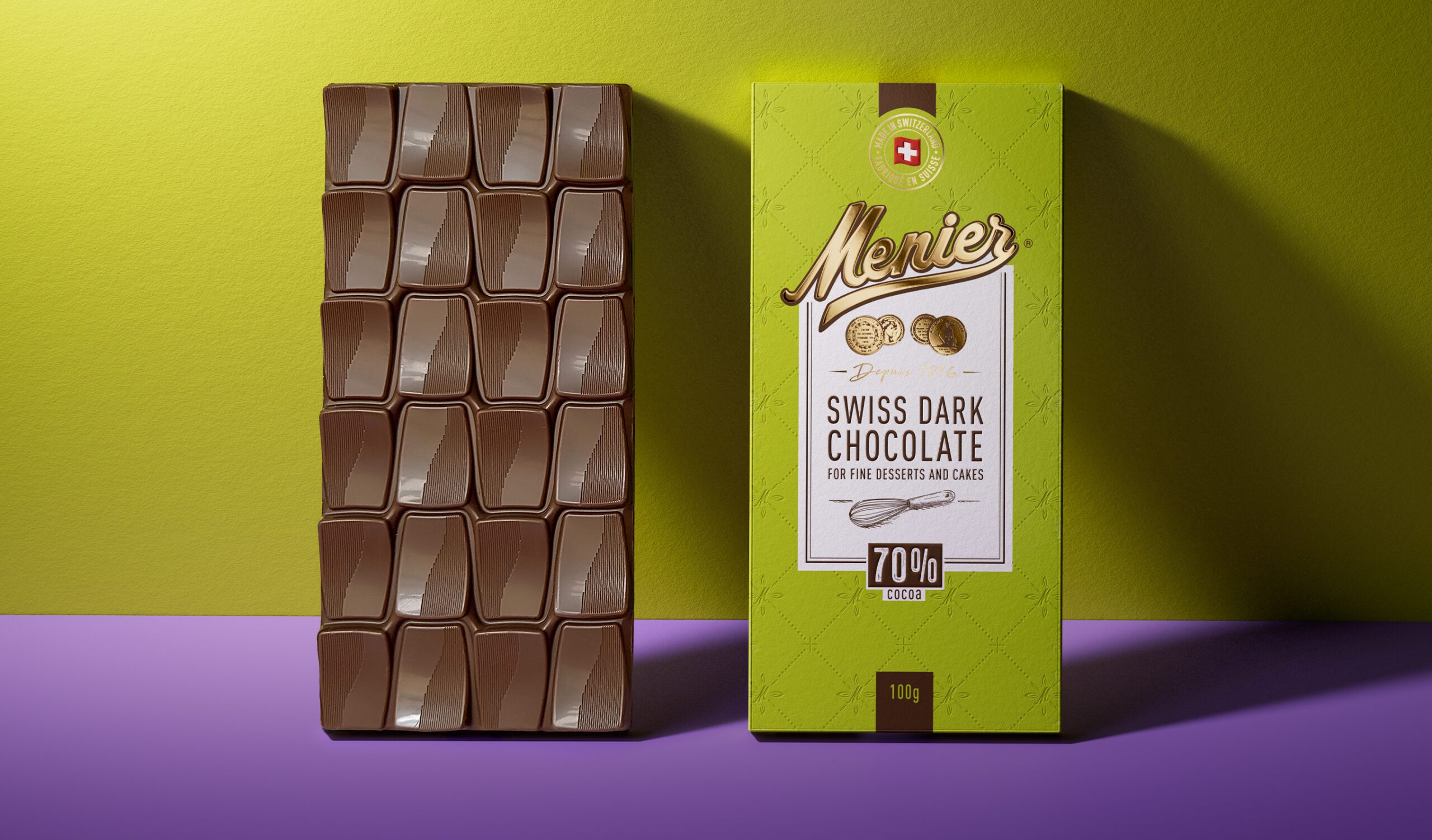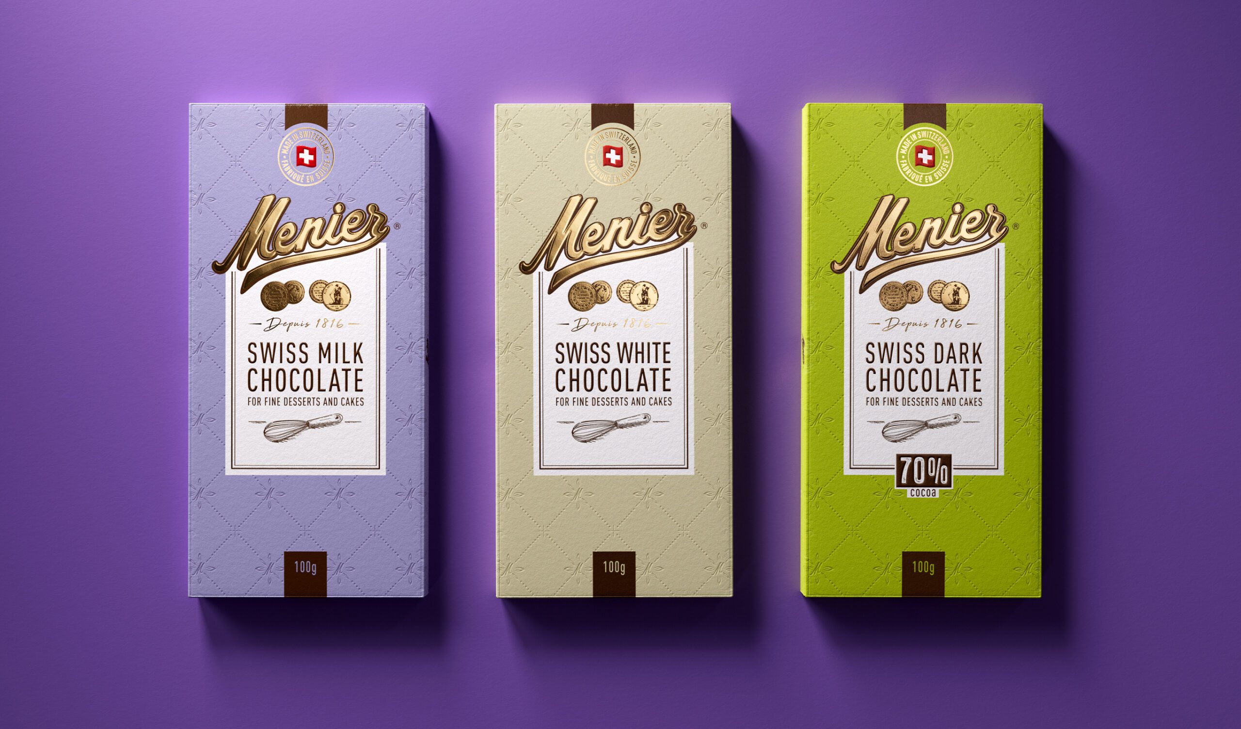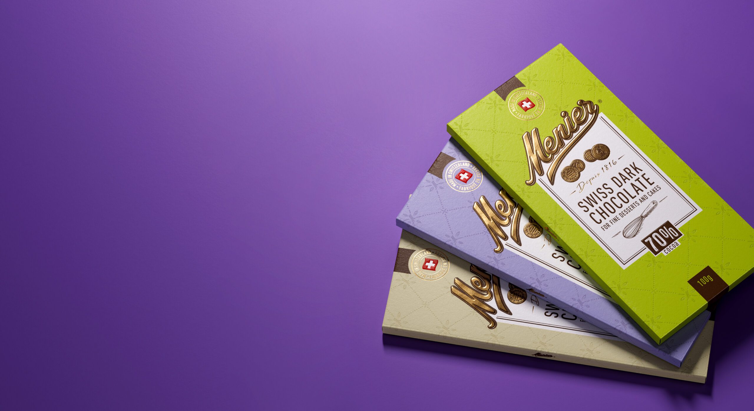 Menier ist für seine Qualität als Koch- und Backzutat bekannt und genießt weltweit das Vertrauen von Profiköchen und Hobbybäckern. Der runde Geschmack der Schokolade sorgt für exzellente Ergebnisse – und macht Menier zur ersten Wahl beim Kochen und Backen. Diese kulinarische Glaubwürdigkeit war auch entscheidend beim Redesign: Sie half Menier, seinen Platz im Regal zu rechtfertigen und seine Position im Premium Schokoladensegment weiter auszubauen.