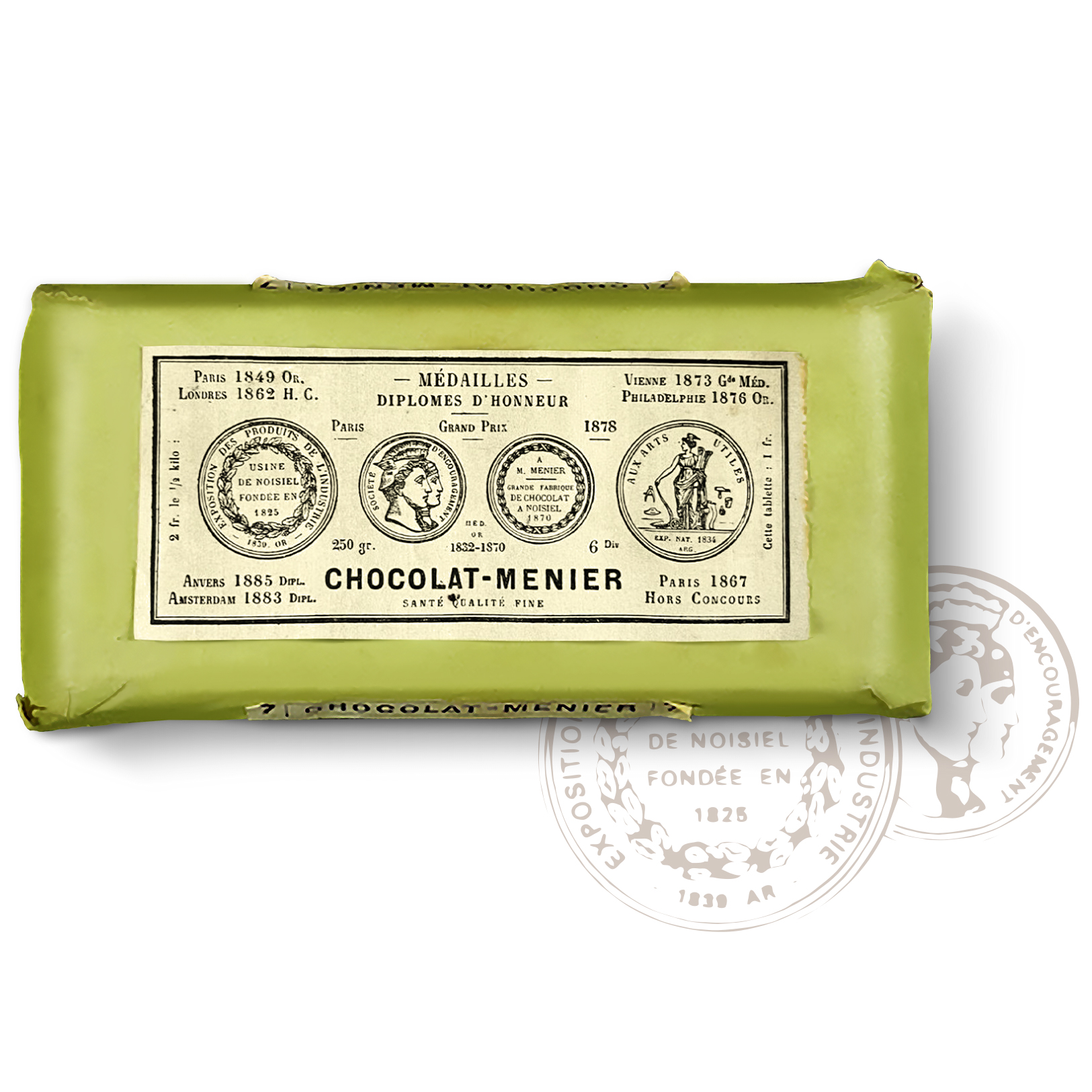 Die ikonische Schokoladenfabrik in Noisiel, am Stadtrand von Paris gelegen, ist ein Meisterwerk industrieller Architektur und Teil des UNESCO-Weltkulturerbes. Hier wurde die ursprüngliche Schokoladentafel von Menier kreiert – und ein Verpackungsdesign, das mit der Zeit gegangen ist, dabei aber nie seine Wurzeln vergessen hat. Historische Details, wie zum Beispiel die unverwechselbaren Medaillen, sind bis heute Teil der Markenidentität.